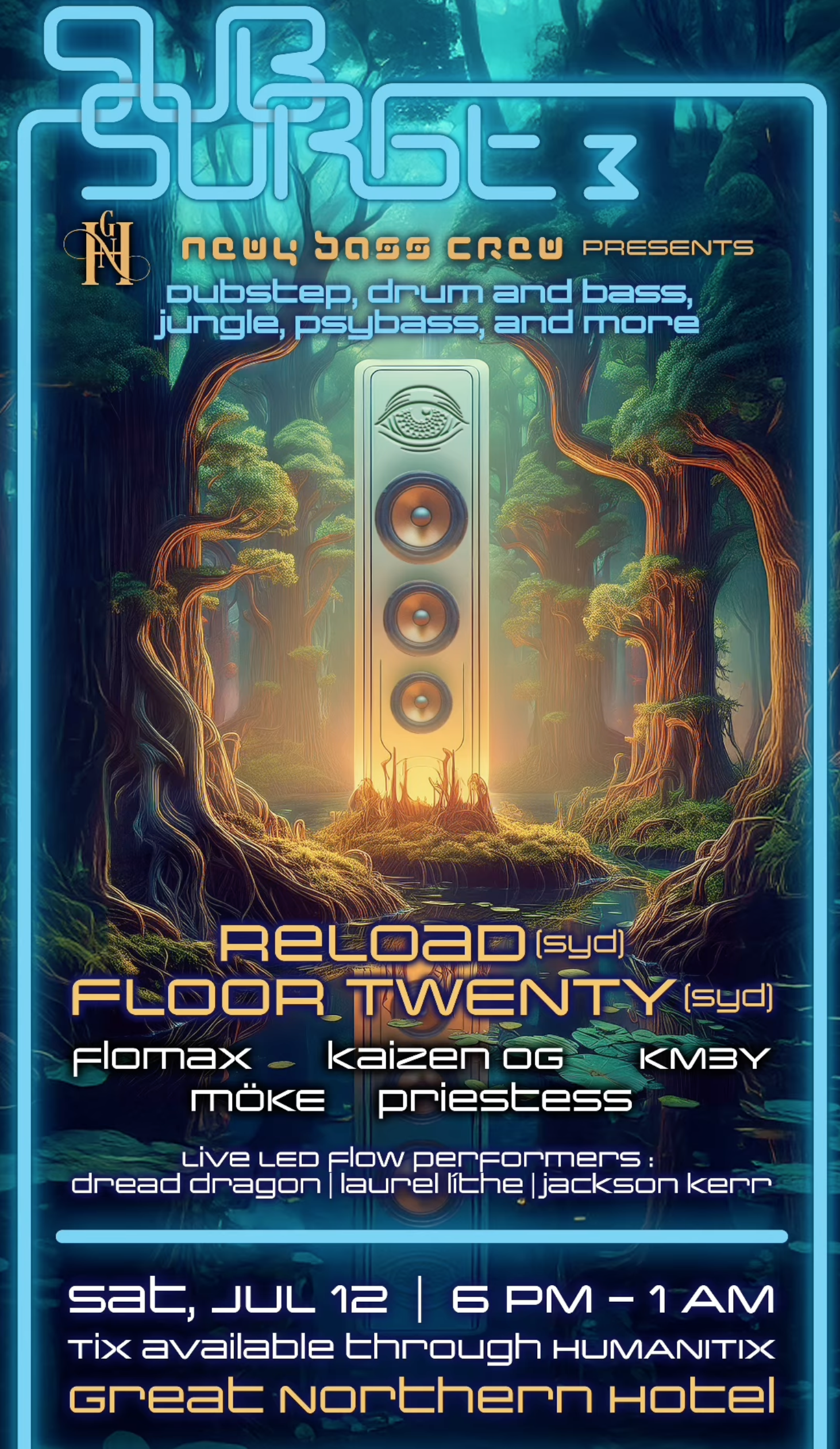 One stage, stacked with raw energy and the best in underground bass music, including drum and bass, dubstep, psybass, jungle, downtempo, breaks, and more.